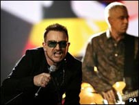 Buổi biểu diễn không được thông báo trước của ban U2 làm giới mộ điệu nhớ lại buổi biểu diễn của ban The Beatles hồi năm 1969 tại trụ sở của công ty thu thanh Apple tại Luân Đôn. Trước đó, ban U2 đã cho biết họ đang chuẩn bị lưu diễn nội trong năm nay và hy vọng sẽ bán vé vào xem với giá hạ thích hợp với tình trạng đình đốn kinh tế toàn cầu hiện nay. Ca sĩ chính Bono đã phái viên Jo Whiley của BBC Radio 1 biết rằng "họ đang dự trù một chuyện rất đặc biệt" cho đầu mùa hè năm nay. Bono tiết lộ thêm rằng "đây sẽ là một cách mới để làm cho các buổi biểu diễn ngoài trời trở nên thân mật hơn rất nhiều với các fan". Bono cho biết ban U2 đang 'cố' đưa ra loại vé hạ, nhưng đồng thời nói "chúng tôi cũng sẽ có loại vé hết sức đắc tiền cho người giàu có". | TRANG NGOÀI BBC BBC không chịu trách nhiệm về nội dung các trang bên ngoài. | ||||||||||||||||||||||||||||||||||||||||||||||||||||||||||||||||||||||||||||