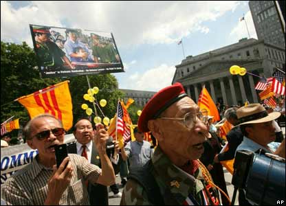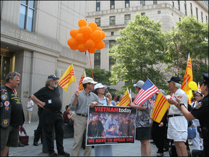 Có lúc đoàn biểu tình phản đối chuyến thăm của ông Triết tới New York trong cùng ngày đã đi ngang qua phiên xử gây bực tức cho một số cựu chiến binh. Họ nói ''Các ông bà không quan tâm tới người đồng hương của mình'', thậm chí ''Tôi chiến đấu cho đất nước của quý vị và tôi thấy hối tiếc''.