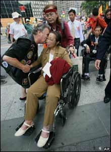 Các cựu binh Mỹ cũng có mặt, trong đó có ông Bill Kelly. Ông này nói ông đã thấy rất nhiều những người bị dị tật trong các bệnh viện ở Mỹ.