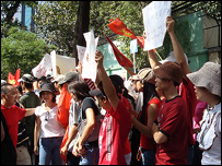 Vai trò của Đoàn Ngay trong ngày diễn ra hai cuộc biểu tình, có vẻ như Thành Đoàn TPHCM và đại diện của Ủy ban Nhân dân đến để xem và tìm cách “giảm nhiệt độ” nhưng đã phải ghi nhận các kiến nghị. Dù thực sự họ nghĩ gì và phải làm gì, thì chắc chắn các quan chức Việt Nam đang thấy rằng một phần dư luận đang tạo sức ép mạnh lên họ. Câu hỏi nay là đây có phải là một diễn biến riêng lẻ hay là một dấu hiệu cho thấy tinh thần dân tộc trong thanh niên Việt Nam đang tìm ngả bùng thoát. Đây cũng là lần đầu tiên từ nhiều năm thanh niên Việt Nam đi biểu tình. Theo lời kể của một nhân chứng gửi đến X-Café thì “nhiều lần anh Tất Thành Cang bên Đoàn thanh niên Cộng sản đứng ra dàn xếp thuyết phục nhưng không thành, vì chúng tôi quyết liệt phản đối”. Vẫn theo nguồn tin này, các thanh niên đã nói: "Vì Đoàn thanh niên Cộng sản thành phố Hồ Chí Minh lẽ ra phải là đơn vị đi đầu, nhưng ở đây Đoàn thanh niên Cộng sản thành phố Hồ Chí Minh chỉ ngồi ngó, chúng tôi không thể đợi Đoàn thanh niên được nữa!" “Và chúng tôi hô vang khẩu hiệu: Thanh Niên Việt Nam độc lập, Thanh niên Việt Nam đoàn kết! Thanh niên Việt Nam tiến lên! trong một hào khí thật đặc biệt” Từ góc độ của nhà chức trách, câu hỏi tới đây sẽ là tình hình đi về đâu và ai làm chủ được nó. Khoa, HCMC Chủ Nhật sắp tới chúng tôi sẽ chờ xem Đoàn Thanh Niên sẽ làm những gì? Có thật sự là đầu tàu dẫn dắt thanh niên không? Hay là sẽ bị mất uy tín nhục nhã trước hàng triệu thanh niên cả nước?! Bởi xưa nay Đoàn luôn nói mạnh mẽ nhất, nay đã đến lúc phải làm... Thu, HCMC Còn hành động bành trướng hiếu chiến của Trung Quốc đối với dân tộc Việt Nam thì các đoàn thể mình phản ứng như thế nào? Balan, Saigon Là thành viên của Hội Đồng Bảo An Liên Hợp Quốc mà không có một động thái nào trước hành động bạo ngược bá quyền của "người anh em" thì thật xấu hổ. | CÁC BÀI LIÊN QUAN Biểu tình phản đối Trung Quốc09 Tháng 12, 2007 | Việt Nam Việt Nam nói biểu tình 'chưa được phép'09 Tháng 12, 2007 | Việt Nam 'Chiến tranh!'10 Tháng 12, 2007 | Việt Nam VN lại lên tiếng về Trường Sa03 Tháng 12, 2007 | Việt Nam Hai phó tổng biên tập Tuổi Trẻ phải đi03 Tháng 12, 2007 | Việt Nam TRANG NGOÀI BBC BBC không chịu trách nhiệm về nội dung các trang bên ngoài. | ||||||||||||||||||||||||||||||||||||||||||||||||||||||||||||||||||||||||||||