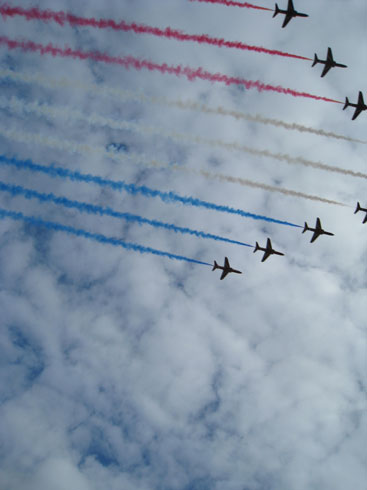 The highlight of the party for me, though, was when the Red Arrows flew straight down the Mall and over Buckingham Palace, streaming read, white and blue smoke.