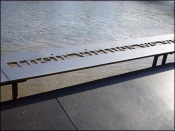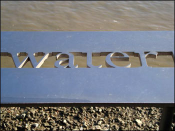Let me explain. I’ve still got something to say about the morning walk. To get to work I have been walking from London Bridge railway station, along the northern bank of the River Thames, heading west. I showed you the pictures last time. But I have since discovered I can also get to work walking along the southern bank of the Thames, also heading West. And I can’t resist showing you two things. First, there is a steel barrier between me and the river, and there is something very interesting written on it. The problem is, I am not a good photographer, and I was too close to get the whole phrase in my photograph. So let’s see if you can solve the puzzle: