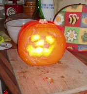 Another Halloween tradition, again from America, is carving pumpkins in to faces. A candle is put inside and the effect is really spooky!