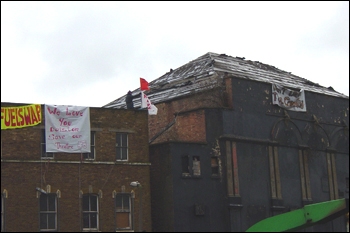 It’s The Dalston Music Hall, now, sadly demolished. It was certainly a grim site, but had stood here in the East End of London for more than 100 years. On the day of the demolition there were protesters determined to physically prevent the building being torn down. They failed.