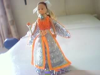 Here's a purse, a mobile pouch, a traditional Asian bride made from crystal chips and a victoria made from crystal chips, and a fairy, too.