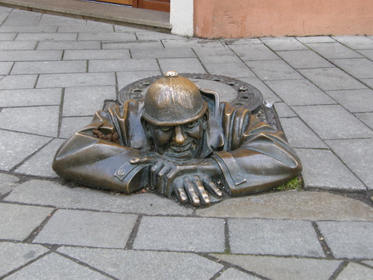 Rubberneck – he looks happily and calmly out from the sewerage hatch on the corner of two streets