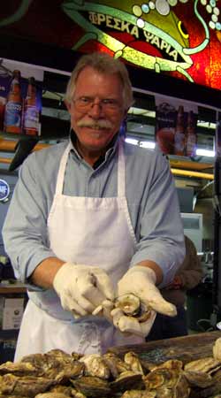 I didn't make it to the funeral (too busy eating the best seafood I've had in ages with Vernon, the oyster shucker, at Nick's in Cross Street Market).