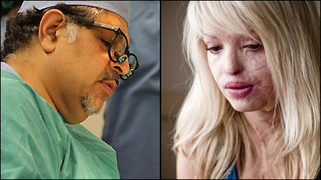 But when she talks of the surgeon who re-built her face she smiles with gratitude and calls him my hero.