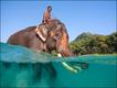 Elephants love water and hosing themselves down to keep cool, but it is very unusual to see an elephant swimming in the sea.