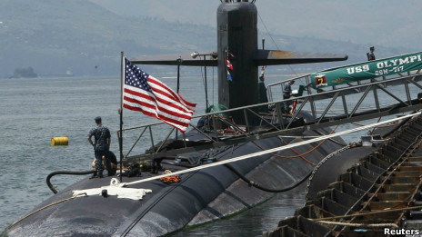 美国的潜艇补给舰停靠在菲律宾的苏比克湾,这是美国在亚太地区增加军事部署的一部分,目的是对付旨在崛起的中国。
