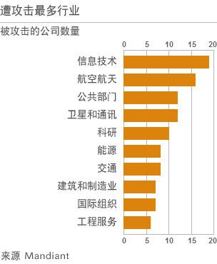 《紐約時報》在最新的報道中引述Mandiant報告,這一輪受到攻擊的美國公司主要集中在信息技術、航空航天、公共部門、衛星和通訊、科研、能源、交通等部門。